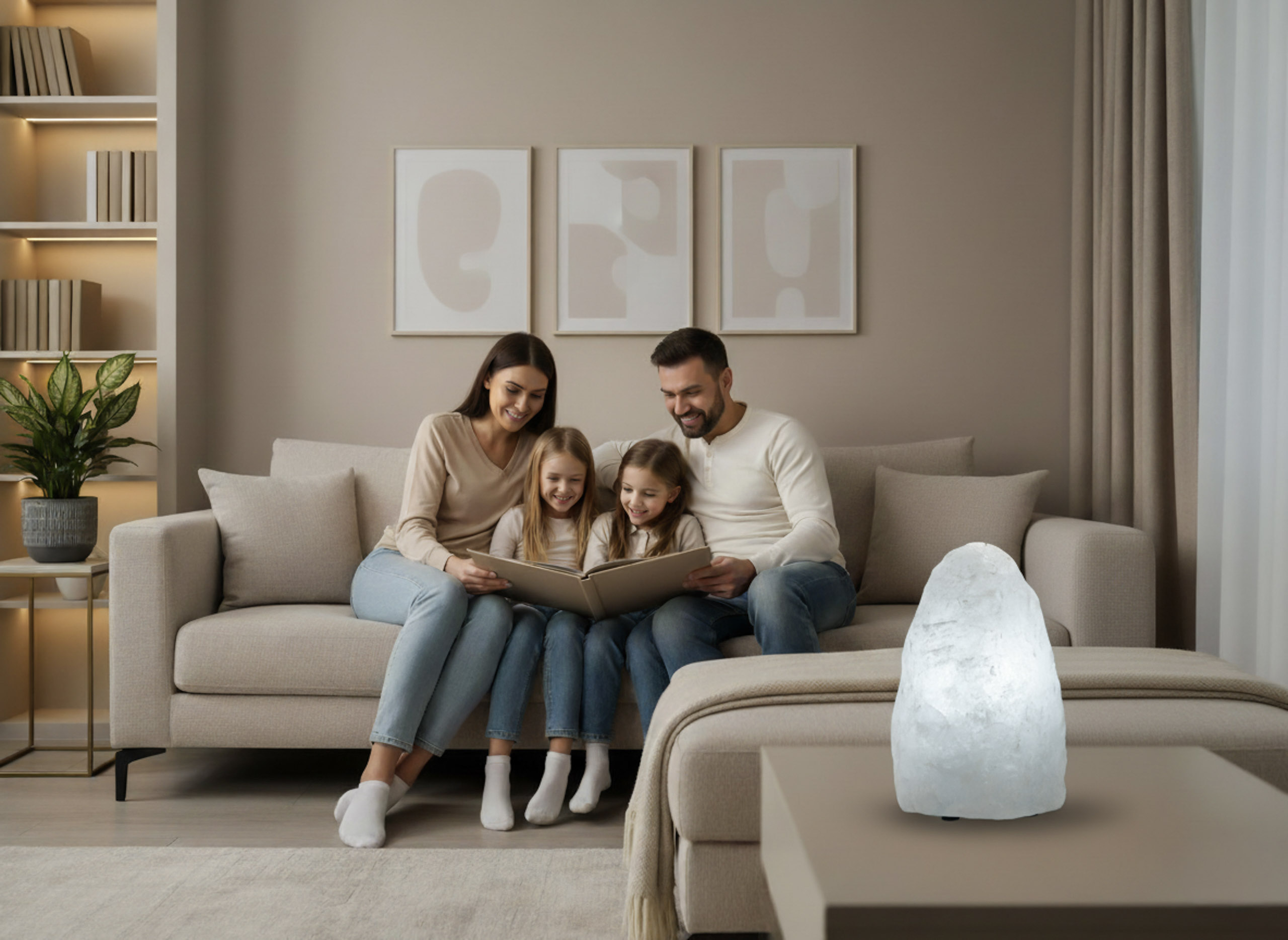 Naturalny Jonizator Powietrza: Rozgrzany polski kryształ uwalnia jony ujemne, które pomagają neutralizować kurz, alergeny i roztocza. To Twoja osobista „tężnia solna” w domowym wydaniu.